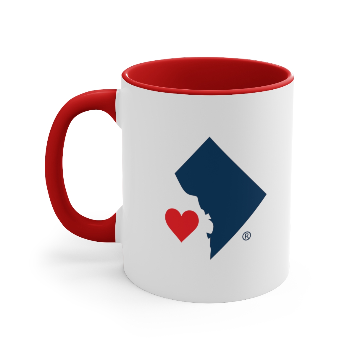 The two-tone design, featuring an accented C-Handle and contrasting interior, perfectly captures the colors of our flag, infusing each sip with a dose of patriotism. Whether you're adding it to your collection or gifting it to a fellow DC enthusiast, your unique design on this mug ensures it stands out, making every coffee break a little more special.